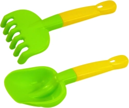 L'ensemble comprend une pelle et un râteau pour enfants avec des bords arrondis, idéaux pour les petites mains et sûrs pour les enfants.