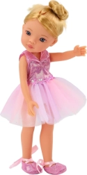 Cette poupée de 33 cm est idéale pour jouer comme pour la collection. Elle a de longs cheveux blonds élégamment relevés en chignon, fidèle au look d’une vraie ballerine. Elle porte une robe rose scintillante à jupe vaporeuse, qui brille magnifiquement à la lumière. Elle est également équipée de chaussures roses et brillantes, parfaitement assorties à sa tenue de danse.
