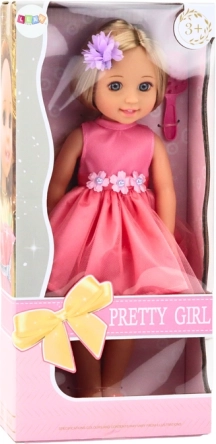 Cette charmante poupée a de longs cheveux blonds stylisables complétés par une jolie barrette. Le set inclut une brosse rose pour coiffer les cheveux. La poupée porte une belle robe rose avec des détails floraux et des petites chaussures roses assorties à sa tenue. Son maquillage délicat et ses yeux et lèvres soigneusement peints ajoutent élégance et charme.