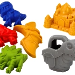 Six moules détaillés et colorés permettent de créer des dinosaures et des tours de château. Idéal pour développer l’imagination et jouer ensemble à la plage ou dans le bac à sable.