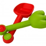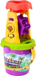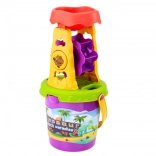 Tout ce qu’il faut en un seul kit : seau avec moulin, tamis et entonnoir, pelle, râteau, arrosoir et deux moules pour un amusement sans fin à la plage et dans le bac à sable.
