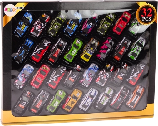Cette riche collection comprend 32 petites voitures uniques aux couleurs vives. Grâce au mécanisme à roue libre, les voitures roulent en douceur sur toute surface plane et invitent aux courses comme aux scénarios de jeu créatifs. L’ensemble est idéal pour des circuits à la maison, des rallyes improvisés et des jeux en groupe.