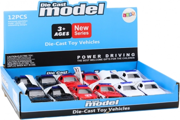 Grâce à la carrosserie en métal, les modèles sont solides et résistants aux chocs. Le produit répond aux normes de sécurité CE et EN 71, il convient donc aux enfants dès 3 ans. L’emballage contient une voiture de police ou de pompiers (les couleurs sont envoyées au hasard ou sur demande : rouge, blanc, noir).