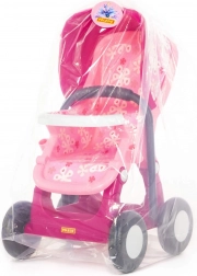 La finition rose avec un imprimé marqué et de grandes roues confère à la poussette une allure attrayante et une bonne stabilité.