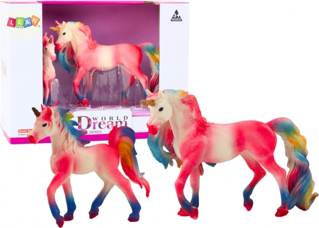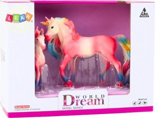 Ensemble enchanteur de deux licornes roses – un adulte et un petit – pour le jeu magique ou l’exposition. Détails réalistes, crinière et queue colorées, fabrication durable et certifications CE, EN71 garantissent un amusement sûr pour les enfants dès 3 ans.