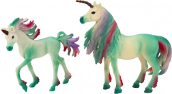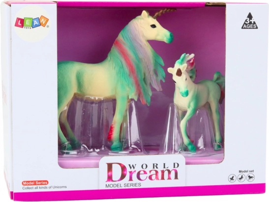 Un charmant lot de 2 figurines de licornes – un adulte et son petit – dans une élégante couleur verte, ravira les petits comme les grands fans de créatures féeriques. Finitions détaillées, textures réalistes et crinière et queue colorées donnent aux figurines un charme unique. Adaptées au jeu comme à la décoration de chambre d’enfant, fabriquées en matériau résistant, avec certification CE et norme EN71.