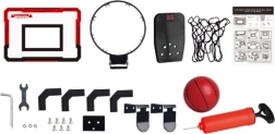 - panneau, panier (arceau), filet, ballon de basket, pompe, compteur de score, crochets/vis, emballage d’origine