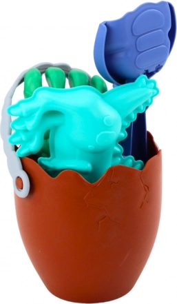 - Seau en forme d’œuf, pelle, râteau, 4× moule dinosaure