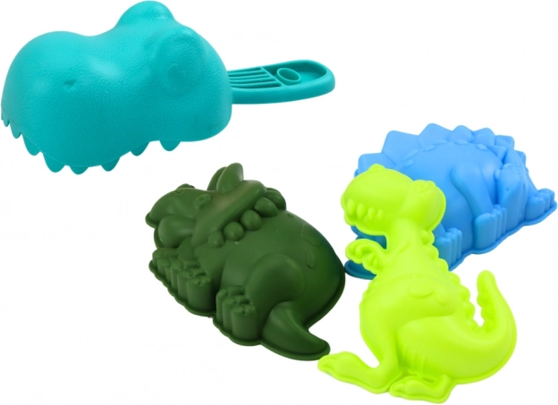Le lot comprend trois moules colorés en forme de dinosaures, avec lesquels les enfants peuvent créer des scènes et des aventures préhistoriques en sable. Les moules stimulent l’imagination et enrichissent le jeu.