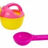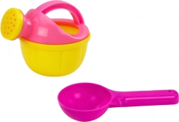 L’arrosoir coloré facilite l’humidification du sable et la pelle compacte tient parfaitement dans la main des enfants pour creuser et transporter.