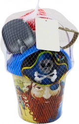Tout est décliné dans le thème pirate : moule en forme de tête de mort, râteau doré et pelle grise robuste. L’arrosoir aux couleurs blanc-rouge facilite le durcissement du sable avec de l’eau, afin que vos constructions ne s’effondrent pas facilement. Le set favorise la motricité fine, la créativité et le jeu de rôle.