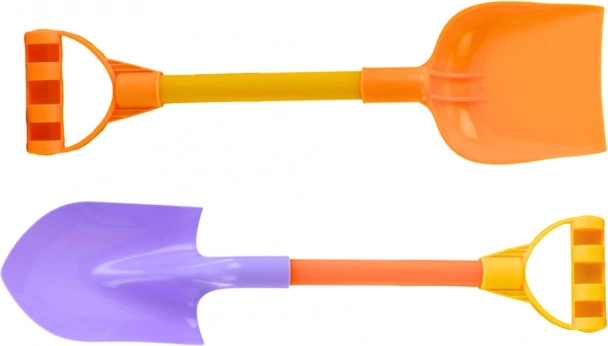 - Deux pelles : Une pelle violette pour le modelage précis des détails et une pelle orange pour transporter de plus grandes quantités de sable.
