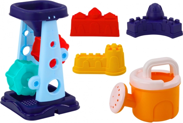 Set de jouets de sable avec moulin, pelles et arrosoir bleu