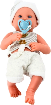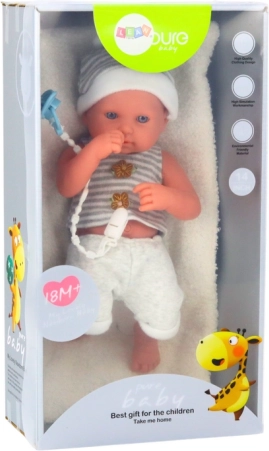 Cette poupée réaliste en tenue douce blanc‑gris séduit par ses traits de visage détaillés et ses accessoires agréables. Grâce à ses membres articulés, les enfants profitent d’un jeu interactif, du change et du rituel du coucher sous la couverture moelleuse. La tétine sur cordon incluse ne se perd pas.