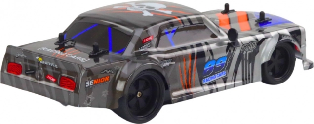 Cette voiture de sport RC grise est conçue pour une conduite dynamique et un contrôle facile. Grâce à la télécommande pistolet ergonomique avec volant et à la fréquence 2,4 GHz, le modèle réagit rapidement et avec précision, pour le plaisir des débutants comme des utilisateurs avancés. Les détails soignés et les graphismes de course en font un modèle attrayant pour toute collection.