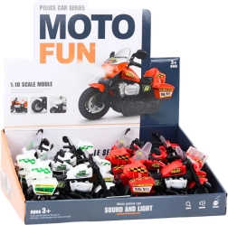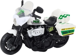 Ce modèle réduit de moto de police à l'échelle 1:10 offre des effets lumineux et sonores réalistes, qui soutiennent l'imagination et la créativité pendant le jeu. Le jouet est disponible en deux couleurs : blanc et rouge. Lors de l'achat, choisissez une couleur, sinon elle sera sélectionnée au hasard.