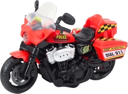 La moto est équipée d'un mécanisme à friction, ce qui signifie qu'elle avance lorsqu'on la pose et qu'on la lâche. La moto fonctionne avec trois piles AG13 incluses dans l'emballage. Les enfants peuvent enrichir leur jeu en suivant le mouvement de la moto.
