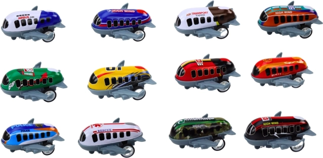 Profitez de longues heures de créativité et de divertissement avec cet ensemble de 12 jouets en forme d'avions. Chaque modèle possède une propulsion et des roues pour jouer au roulage. Les avions colorés avec des descriptions telles que « Vents forts » et « Transport aérien » inspirent l'imagination des enfants.