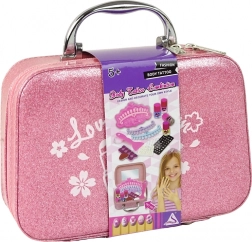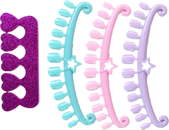 Découvrez un coffret magique pour petites stylistes – une valisette rose pailletée compacte, remplie d’accessoires pour les ongles. Grâce à sa fermeture éclair facile, sa poignée robuste et son miroir intégré, les enfants peuvent créer en toute sécurité et confort leurs premières créations ongulaires où qu’ils soient. Le set comprend 4 vernis colorés, une plaque de stamping, des autocollants et strass, des séparateurs d’orteils et d’autres accessoires pour un décor créatif des ongles.