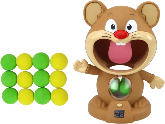 Le set de jeu est très simple à utiliser. Il suffit de charger le pistolet avec des balles souples, puis de viser la bouche du hamster. Lorsque vous touchez la langue du hamster, le jeu émet un son confirmant l’impact et vous verrez vos réussites enregistrées sous forme de points sur un petit écran LCD. Le set comprend également un pistolet et des balles souples spéciales pour des heures de divertissement.