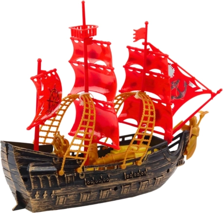 - Design authentique avec coque brun doré et voiles rouges