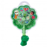Le joyeux jouet à bulles avec moulin à vent vert combine la fonction d’éventail et de générateur de bulles. Il suffit de verser la solution dans la coupelle fournie, d’immerger le moulin à vent et de le laisser tourner au gré du vent – un flux de petites et de plus grandes bulles apparaît, faisant naître un sourire sur le visage de chaque enfant.