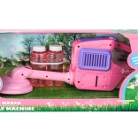 Cette tondeuse rose est équipée d’un générateur intégré de bulles de savon qui enthousiasmera les enfants. L’utilisation est simple et intuitive, ce qui permet aux enfants de jouer en toute autonomie. Il suffit de connecter la bouteille de liquide à bulles et, en appuyant sur le bouton, des bulles colorées se forment pour embellir chaque jardin.