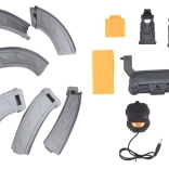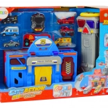 Le set comprend 6 véhicules prêts à intervenir, qui peuvent être rangés dans la base. La base se plie en valisette et se transporte facilement grâce à une poignée pratique. Le jouet fonctionne avec trois piles 1,5 V AA, non incluses.