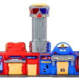 La caserne de pompiers et le poste de police City Action offrent de nombreuses possibilités de jeu avec des bâtiments de services de secours, un microphone, des lumières et une rampe pour voitures. Les enfants peuvent alerter les véhicules de secours et diriger les opérations. Les petites voitures peuvent dévaler la rampe du garage pour dynamiser le jeu.