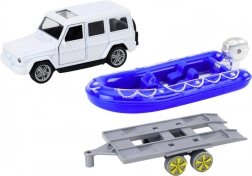 Profitez d'aventures passionnantes avec la voiture tout-terrain et le bateau à moteur bleu ! Ce modèle métallique offre des détails précis, y compris des portes ouvrantes où les enfants peuvent placer les figurines de conducteur et de passagers.