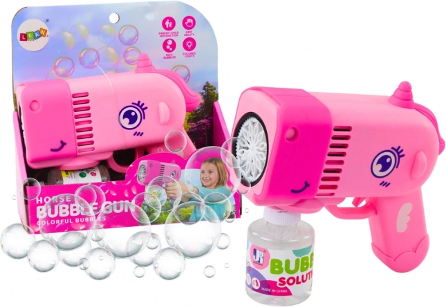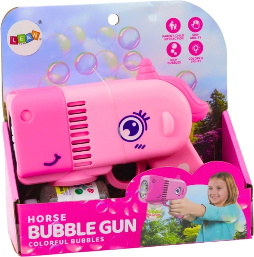 Un pistolet à bulles de savon amusant en forme de mignon dinosaure rose ravira chaque enfant. Grâce à ses dimensions compactes, il est idéal pour les promenades et les sorties, et il est très facile à utiliser – il suffit d’appuyer sur le bouton pour libérer une multitude de bulles colorées. La solution fournie se visse directement sur le pistolet, évitant ainsi tout renversement. Le jouet est fabriqué en matériaux durables et non toxiques, dispose de lumières LED, est conforme aux normes CE et EN71, et convient aux enfants à partir de 3 ans.