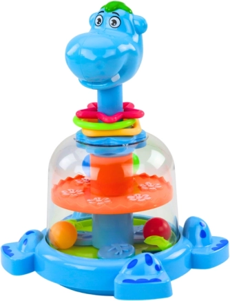 L’hippopotame interactif séduit par ses couleurs vives et sa manipulation simple. En appuyant sur la tête, la roue dans le ventre se met à tourner et 4 billes colorées s’animent. Les enfants observent les billes qui sautent et changent de direction, stimulant leur curiosité et leur concentration.