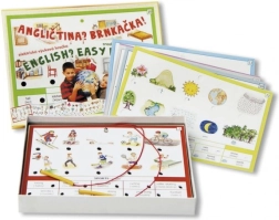 La tâche consiste à associer l’image au mot anglais correspondant, ce qui allume un voyant vert. Chaque mot est accompagné de la prononciation anglaise correcte. Le jeu contient également un glossaire récapitulant les mots utilisés sur chaque fiche avec leurs traductions tchèques.