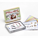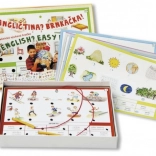 Le jeu offre une manière ludique d’apprendre l’anglais pour les enfants à partir de 6 ans. Il comprend 16 fiches interchangeables, chacune présentant un thème avec dix mots :