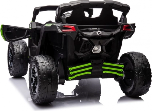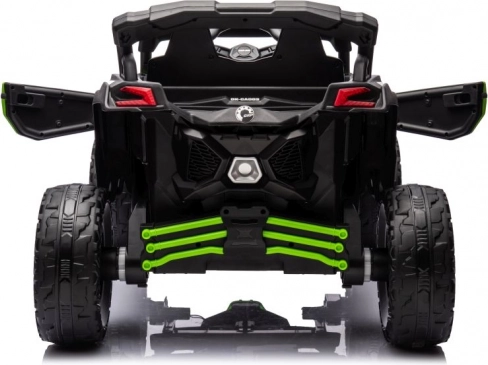Quad tout-terrain pour enfants Can-Am offre une conduite sûre et amusante pour les petits aventuriers. Sa construction robuste et son schéma de couleurs vert et noir saisissant garantissent une excellente expérience de conduite aussi bien en extérieur que sur le terrain de jeu.