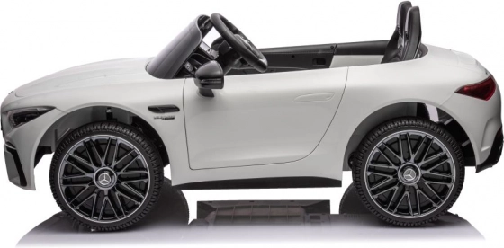 La voiture reproduit fidèlement les lignes et les détails du modèle MERCEDES AMG SL63 – de la calandre sportive aux feux marquants et aux jantes. Les enfants profitent d’un look authentique de vraie voiture.
