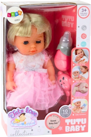 Sur le ventre de la poupée, il y a un haut-parleur qui, lorsqu'on appuie sur le bouton, émet différents sons qui peuvent imiter diverses émotions et comportements de bébés. Cela stimule l'imagination des enfants et aide à développer les compétences auditives et cognitives.