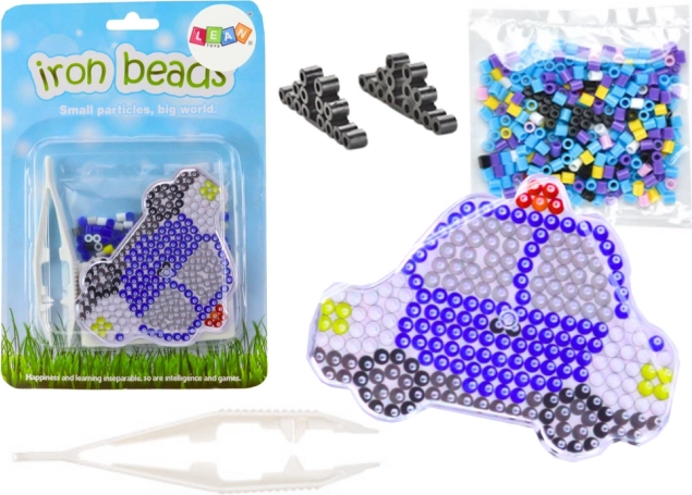 L'ensemble offre des perles colorées, qui permettent de créer un dessin à l'aide des pinces fournies. Les enfants peuvent ainsi exercer leur coordination main-œil et la précision du mouvement. Une fois le motif terminé, les perles sont recouvertes d'un papier spécial et repassées. Le résultat est une image durable et colorée de la voiture, pouvant servir de décoration ou de cadeau original.