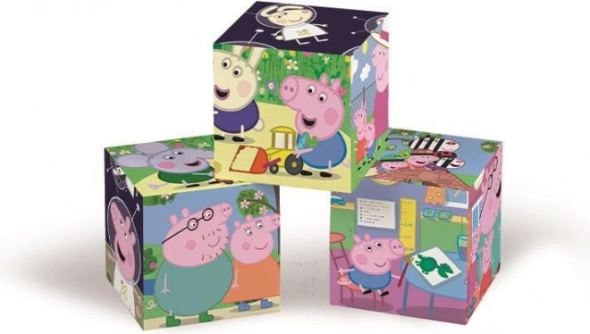 Un set ludique pour les tout-petits : six cubes en plastique aux motifs de Peppa Pig. Les enfants entraînent leur motricité fine, leur coordination et, en assemblant les images, développent leur raisonnement logique ainsi que leur imagination. Idéal pour les premières constructions et pour inventer des histoires.