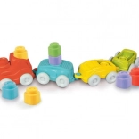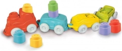 Les blocs Soft Clemmy colorés aux textures variées stimulent le toucher, la motricité fine et une exploration sûre. Ils peuvent être insérés dans les wagonnets et empilés en tours.
