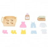 Le coffret comprend un fer à repasser, une lessive, un panier et du linge en feutre – tout pour une « journée de lessive » complète dans la chambre d’enfant.