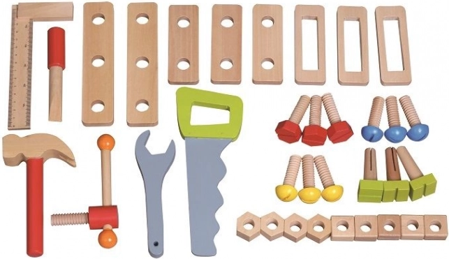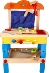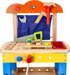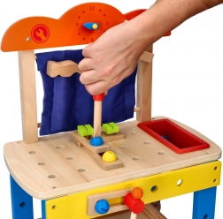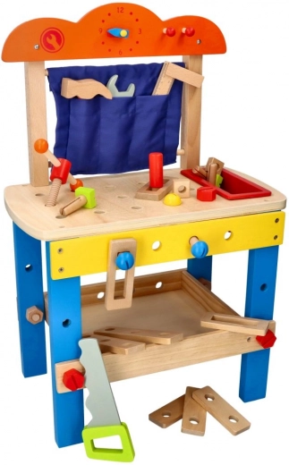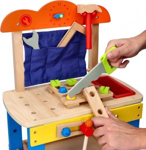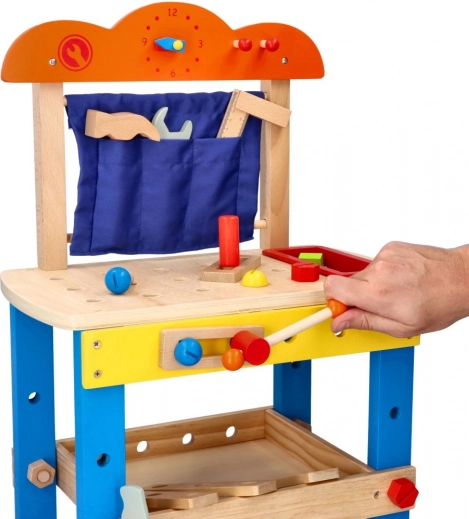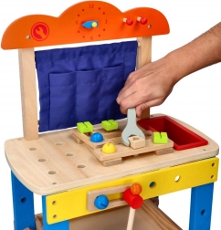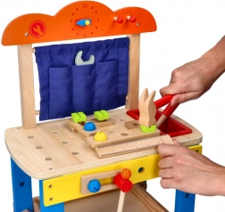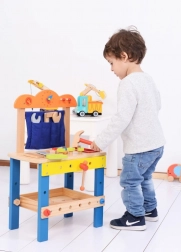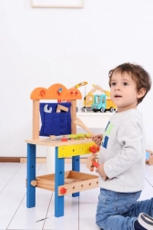 Cet atelier de travail en bois de haute qualité est conçu pour initier les enfants en toute sécurité au monde des outils. Les éléments colorés, les pièces fonctionnelles comme les vis, écrous et engrenages, ainsi qu’un compartiment pratique pour les outils, stimulent la curiosité naturelle et le développement des compétences.