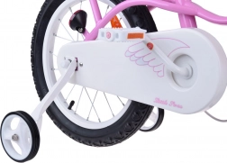 ROAYLBABY Little Swan 14" est un charmant vélo pour enfants en rose et blanc, conçu pour les premières sorties avec un accent maximal sur la sécurité, le confort et un apprentissage facile. Le cadre en acier léger facilite la montée et les pneus hauts à motif antidérapant assurent une bonne adhérence.