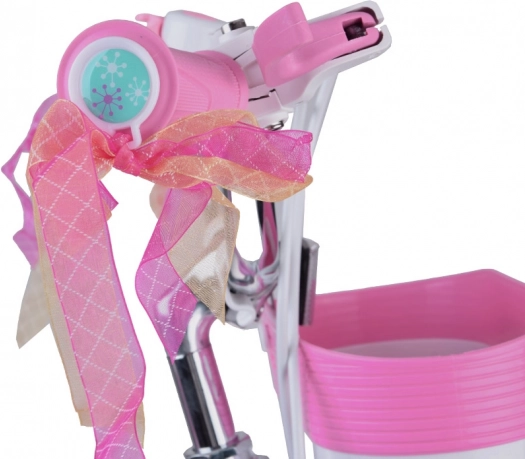 Le guidon ergonomique avec poignées souples, sonnette et pompons ravira les petites cyclistes, tandis que la combinaison du frein avant à étrier et du frein arrière à tambour garantit un freinage fluide et sûr. Les roulettes latérales apportent de la stabilité pendant l’apprentissage et le panier pratique accueille les petits objets. Le confort de pilotage est complété par une selle moelleuse, réglable en hauteur avec poignée de maintien.