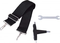 - Sangle de transport (longueur 70 cm), clés Allen, clé plate, béquille