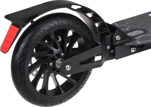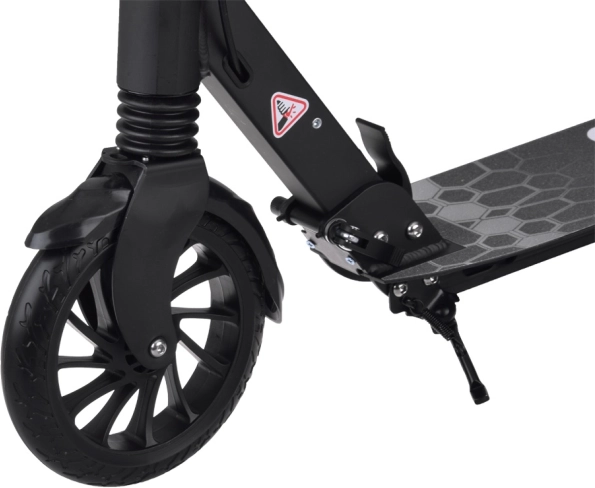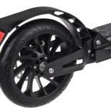 L’amortisseur avant absorbe les irrégularités et les roues en PU de 200 mm de diamètre garantissent stabilité et confort sur les surfaces urbaines.