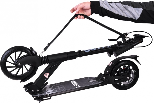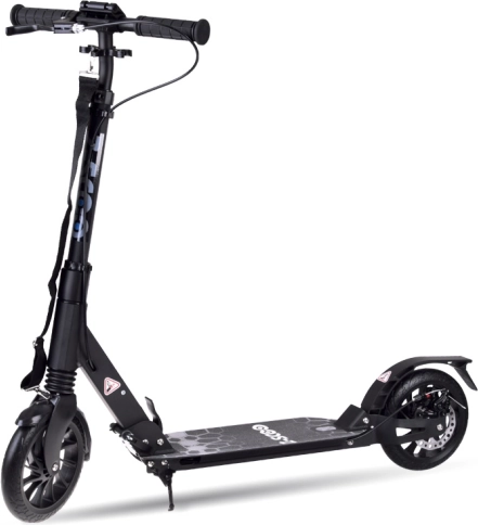 Le mécanisme « one hand » permet de plier la trottinette en quelques secondes. La sangle d’épaule fournie facilite le transport dans les transports en commun et dans les escaliers.