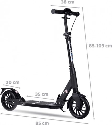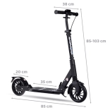 Profitez d’une conduite confortable en ville avec cette grande trottinette pliable pour enfants et adultes. Elle offre un système de freinage à deux chambres, une suspension avant, de grandes roues PU de 200 mm et un pliage rapide à une main. Grâce au guidon réglable en hauteur 85–103 cm, à la construction en aluminium robuste et à la capacité de charge jusqu’à 100 kg, elle est idéale pour les trajets quotidiens comme pour les loisirs.