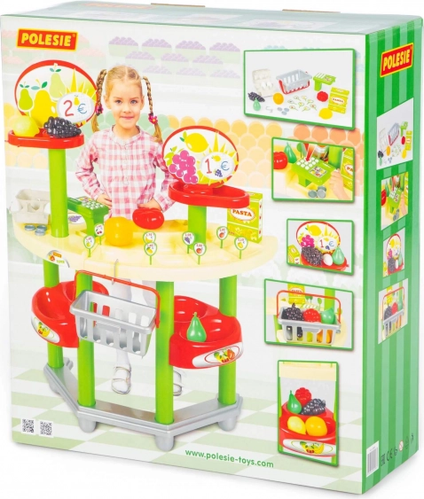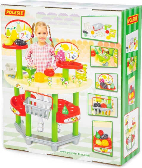 Entrez dans un monde d’imagination avec le set de jeu Supermarché de la marque Polesie. Grâce à des accessoires réalistes, tels que des étiquettes de prix, des pièces et différents types de produits, les enfants créent facilement l’atmosphère d’un véritable magasin. Le comptoir avec compartiments et la caisse invitent au jeu de rôles naturel – vendeur, client, caissier – et développent les interactions sociales.