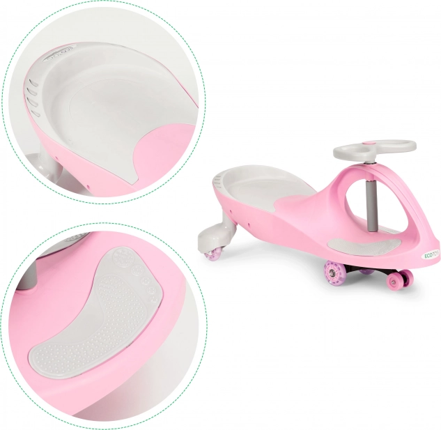 Un mécanisme spécial permet de démarrer en oscillant le volant de gauche à droite. Les enfants entraînent naturellement leur équilibre et leur coordination tout en profitant d’une conduite fluide, à l’intérieur comme à l’extérieur.